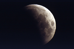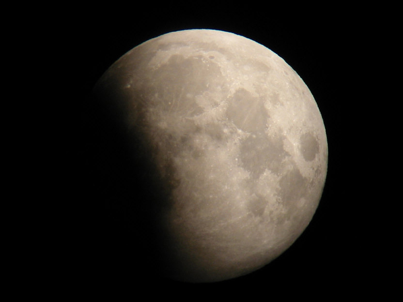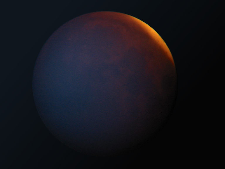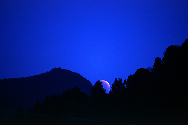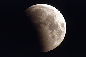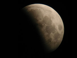 Kurz nach Beginn der Totalität verschwand der Mond im Dunst und ich wieder nach Hause. In den 5-Uhr-Nachrichten wies SWR3 auf die beginnende Mondfinsternis und den dann kupferroten Mond hin. Wäre schade gewesen, wenn jemand dann erst rausging. Auf dem Heimweg so kurz vor halb sechs konnte ich schon nichts mehr sehen. So kuschelte ich noch eine Stunde ins warme Bett. Instrumente: Reflektor 8" |