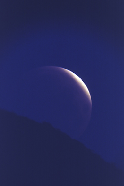 Diese Bilder (von 4:58 und 5:15) sind ein Nachtrag von Rudolf Höll. Sehr interessant auch das linke Bild, in welchem - in Gegensatz zu den oberen Bildern - im Kernschatten die dunkle Seite des Mondes betont ist. Instrumente: 30 mm Fotoobjektiv |