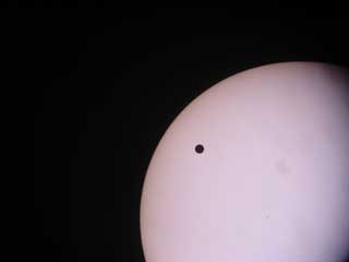 ganze Venus herum (ja, ich bin sicher diesen auch auf der sonnigen Seite gesehen zu haben). Der Beweis: Venus hat eine Atmosphäre! Eigentlich erstaunlich, dass man dies aus gut 40 Mio km Entfernung sehen kann. Ob dies an der mächtig dicken Venusatmosphäre liegt? Tropfenphänomen? - Fehlanzeige. Vielleicht war die Luft einfach zu gut? Auch beim Austritt später haben wir nichts (ich selbst meine "ein wenig") davon gesehen. |