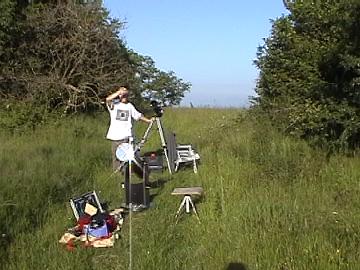 und eine noch relativ kühle, ruhige Luft. Wir vezogen uns hinter die Bergkuppe um freien Blick nach Osten zu haben. Nachführung und Strom hatten wir ja nicht nötig... |